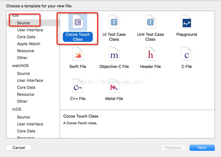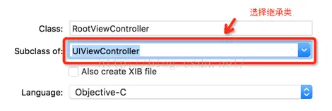 一定要选择CocoaTouch Class文件: