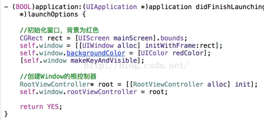 self.window.rootViewController = self.viewController;(设置完根控制器之后并没有将控制器的view添加到窗口中)