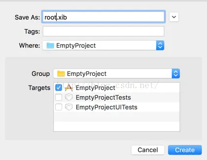 选择下一步,命名root.xib即可