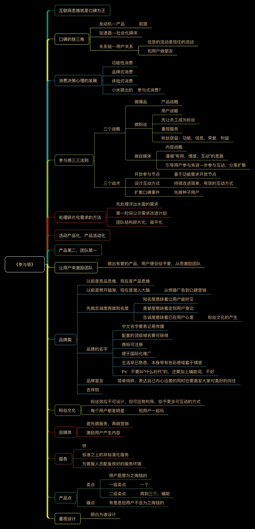 如何让用户在产品的打造和营销中发挥最大作用? Saijunhu 2016-10-16 876 阅读1分钟 原文链接: bmr731.github.io 怎么说呢,这本书就那样,干货不多从小米这个典型的口碑和粉丝文化浇灌出来的品牌身上有很多可以学习的地方,但本书写的不成结构体系,知识有点散乱,而且扯了太多设计方面的东西,凑乎来吧,至少“参与感”这方词是小米带起来的,这个概念解释的还是比较可以的,学习了
