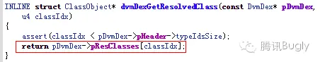 - 设定 dvmResolveClass 这个方法的三个入口参数,再调用 dvmResolveClass: 1)引用类 referrer 的 ClassObject:这里需要设定一个引用类,并且能够获取到该类的 ClassObject 2)补丁类的 classIdx:需要获取补丁类在 app 原先所在 dex 的 classIdx,通过这个 classIdx 可以在 dex 里找到已解析的类或者获取类的名字 3)布尔值 fromUnverifiedConstant:在C/C++层,这个值可以固定设置为1或者 true