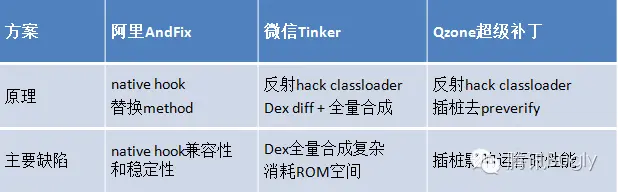 自2015年 Android 热补丁技术开始出现,之后各种方案和框架层出不穷,原创性的技术方案主要有以下几种:
