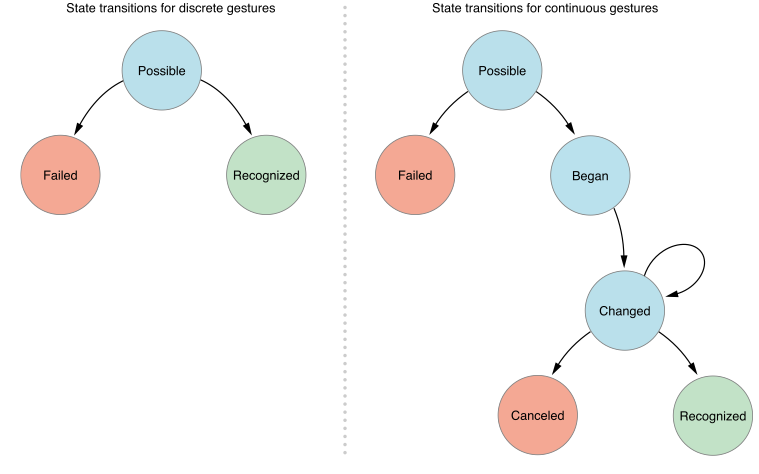 - 当用户没有点击屏幕,所有手势都处于Possiable状态。