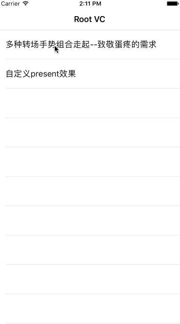 每个效果都分别有对应的实现了AnimatedTransitioning和InteractiveTransition逻辑的文件。