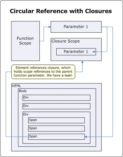 1. 单纯的JS Engine Object的Circular References、Closures是不会引起内存泄漏;