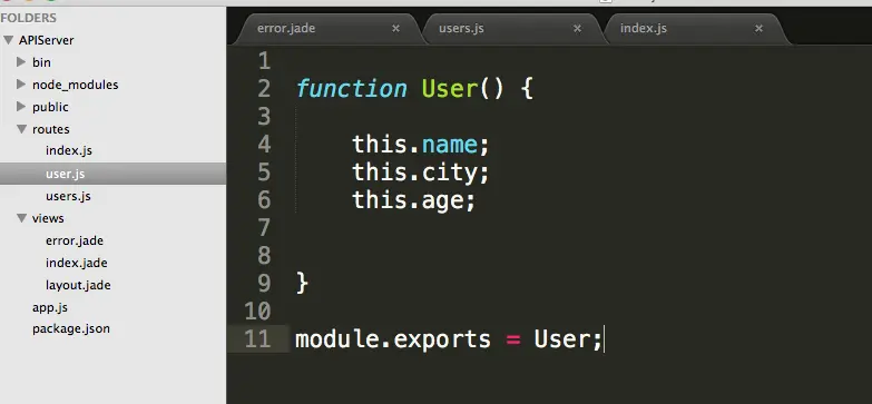 很简单在 routes目录下创建一个user.js文件内容如下:
