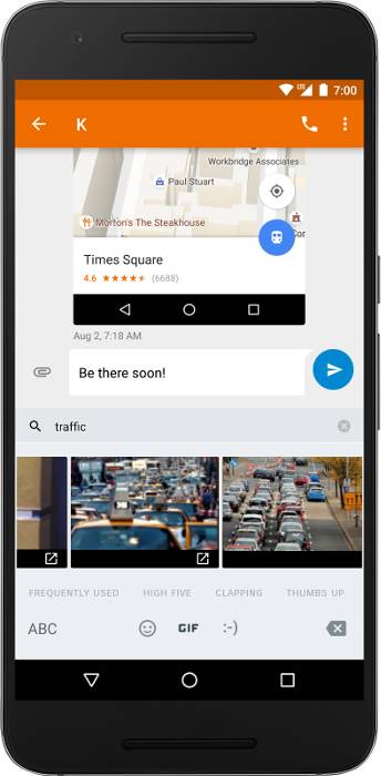 - 图像键盘支持 — 扩展了用户可以从键盘输入的内容类型,让他们可以通过自定义贴图、gif 动画等图像表达自己。应用能够告诉键盘它们可以接受的内容类型,键盘则可以输出它们可为用户提供的所有图像和其他内容。为实现广泛的兼容性,该 API 也可在支持库中获取。