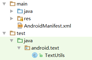 test/java目录下,创建android.text.TextUtils类