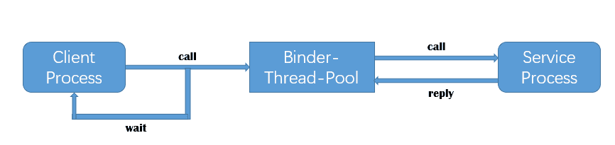 - 客户端线程将远程调用操作交给 Binder 线程池,并阻塞等待返回远程方法执行完毕返回;