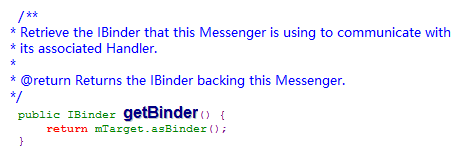 return messenger.getBinder();//将Binder返回给请求绑定的进程