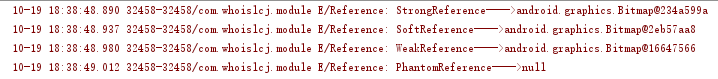 Log.e("Reference", "SoftReference---->" + bitmap);