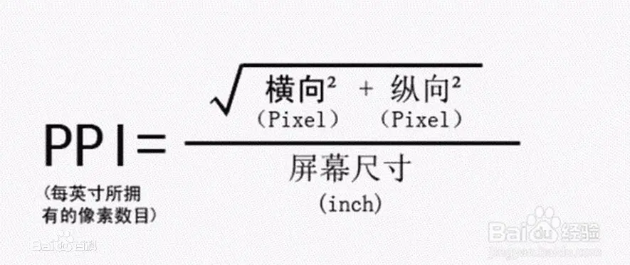 可以看出,虽然iphone4和iphone3GS的物理尺寸都是3.5英寸,但是iphone4的屏幕分辨率为640x960px,而iphone3GS的分辨率为320x480px,刚好是iphone4的1/4。这也就是iphone3gs和iphone4的物理尺寸相同,但是像素尺寸不同,这个不同我们用一个概念来表述,也就是上面提到的像素密度。那么这个像素密度是怎么计算的呢?如下图: