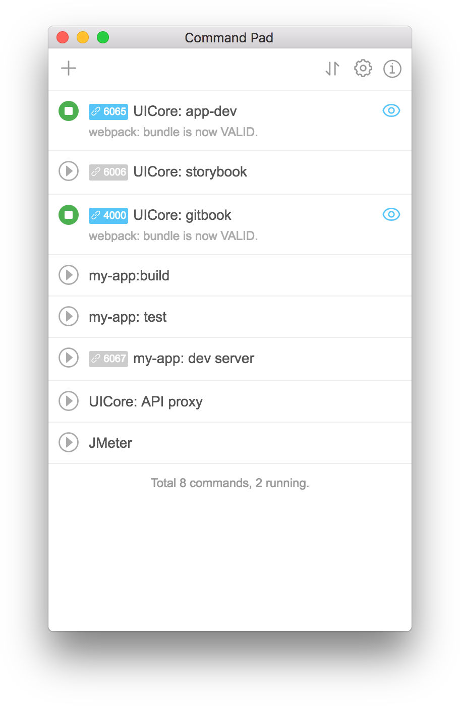 Command Pad is a handy GUI application for managing your command line programs. It helps to start and stop a command line program easily and you can also monitor the output.