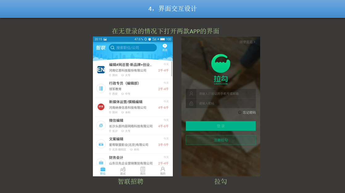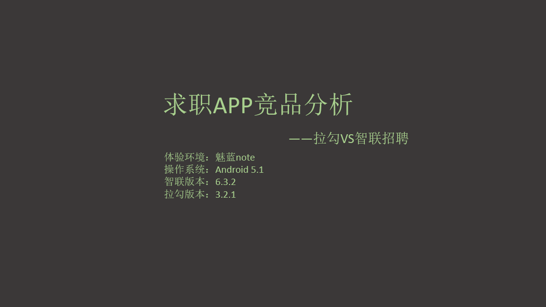 本人是2017届本科应届毕业生,最近经常使用求职APP,想提高求职APP的体验,让求职者能更快找到喜欢的工作,因此做了一个智联招聘APP和拉勾APP的竞品分析报告。欢迎批评建议。