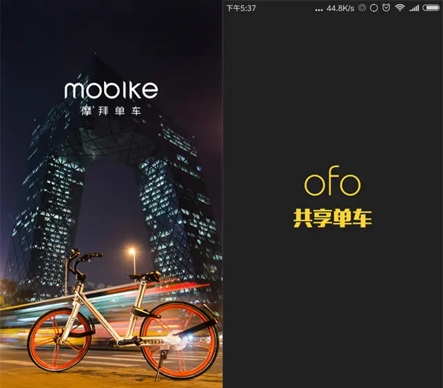 从视觉效果来看,摩拜单车的开屏图效果略比ofo有逼格,这也是摩拜最新的开屏图,而ofo最近则没有换过最新的开屏图。