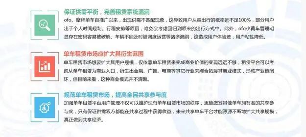 共享单车经济在2016下半年大爆发,成了日常生活用户出行不可缺少的交通工具和资本追逐的对象,这对在这个领域里的共享单车企业来说都是个机会,特别是ofo这样的先驱者。现在摆在ofo的面前的机会很多,ofo的本身的是模式复制性非常高,每开一所学校就拿下一堆用户,如果能实现快速复制,占领全国应该是没有问题的。高速复制的速率同时可以保证订单量和用户量,对于创业公司来讲更容易融资。ofo如果可以吃透大学校园,拿到中国上千万的大学生用户,ofo本身将是中国最大的校园媒体,环保,更高效率,这对于ofo这样的健康出行方式,将是未来全世界都会提倡的出行方式。