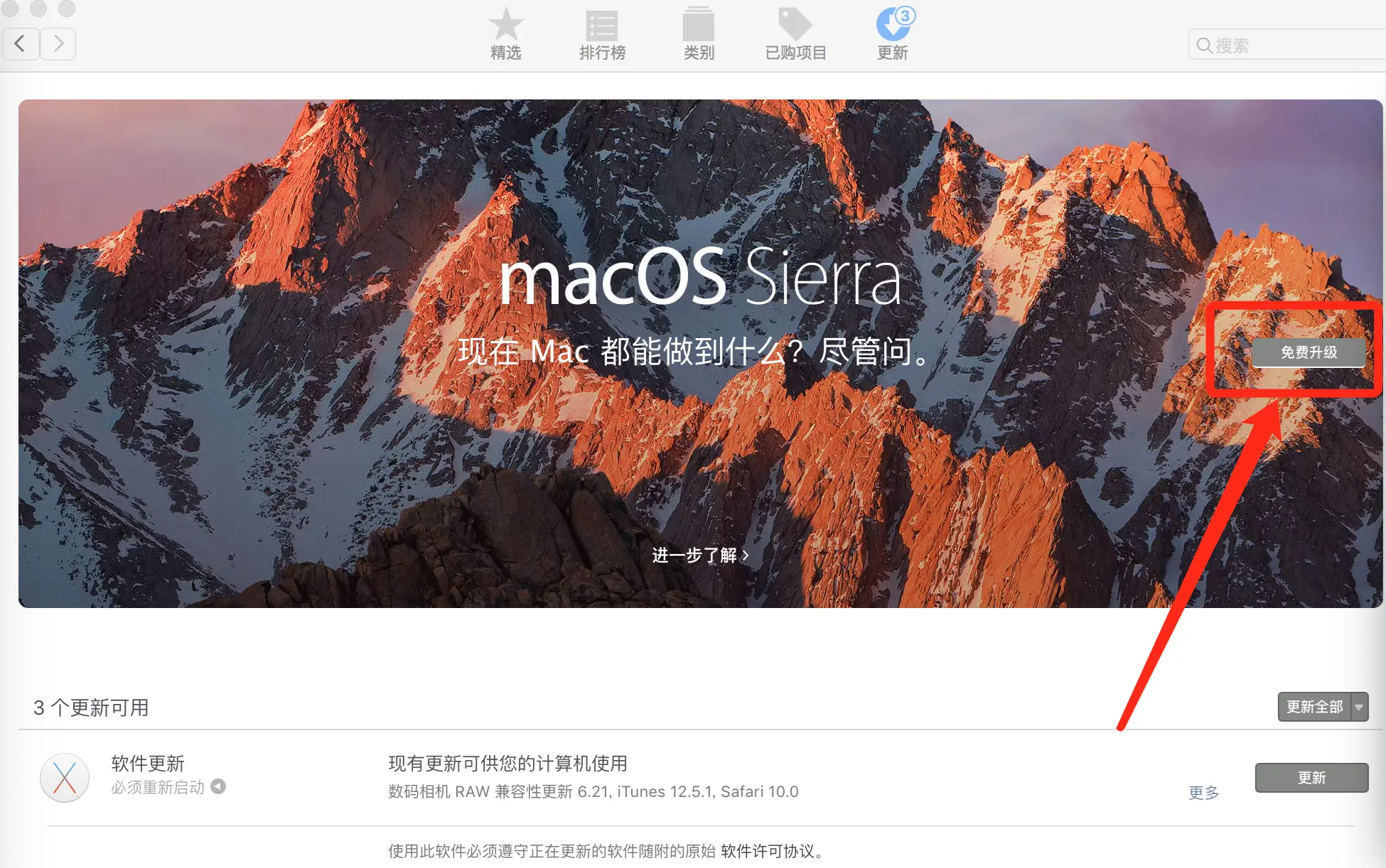 P.s.如果找不到App Store的同学也可以在屏幕左上角【→关于本机→软件更新】开始你的更新大业~