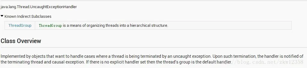 ThreadGroup 这个类就是实现了UncaughtExceptionHandler这个接口,如果想捕获异常我们可以实现这个接口或者继承ThreadGroup,并重载uncaughtException方法。
