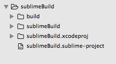那么有了这个了解,我们就知道这一切的设想是可能的。 那么咱们来实际的体验一下。 假设我们创建了一个项目,名称为 sublimeBuild。 那么再这个项目的根目录中, 我们同样创建一个 sublimeBuild.sublime-project 文件。 这样,我们的文件结构就是这样: