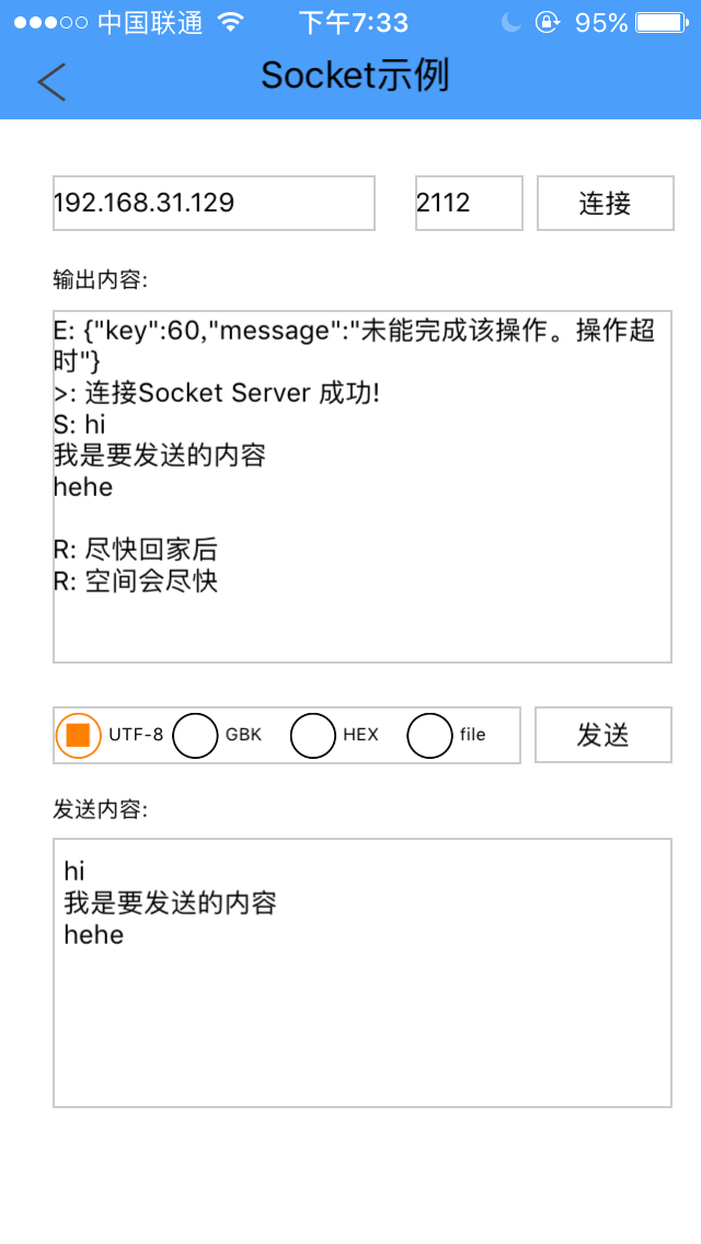 do_Socket只实现了socket的客户端的功能,这个示例完整了展示了组件的基本用法,需要和sockettest3工具配合使用,sockettest3做为一个socket server来和移动端通讯。