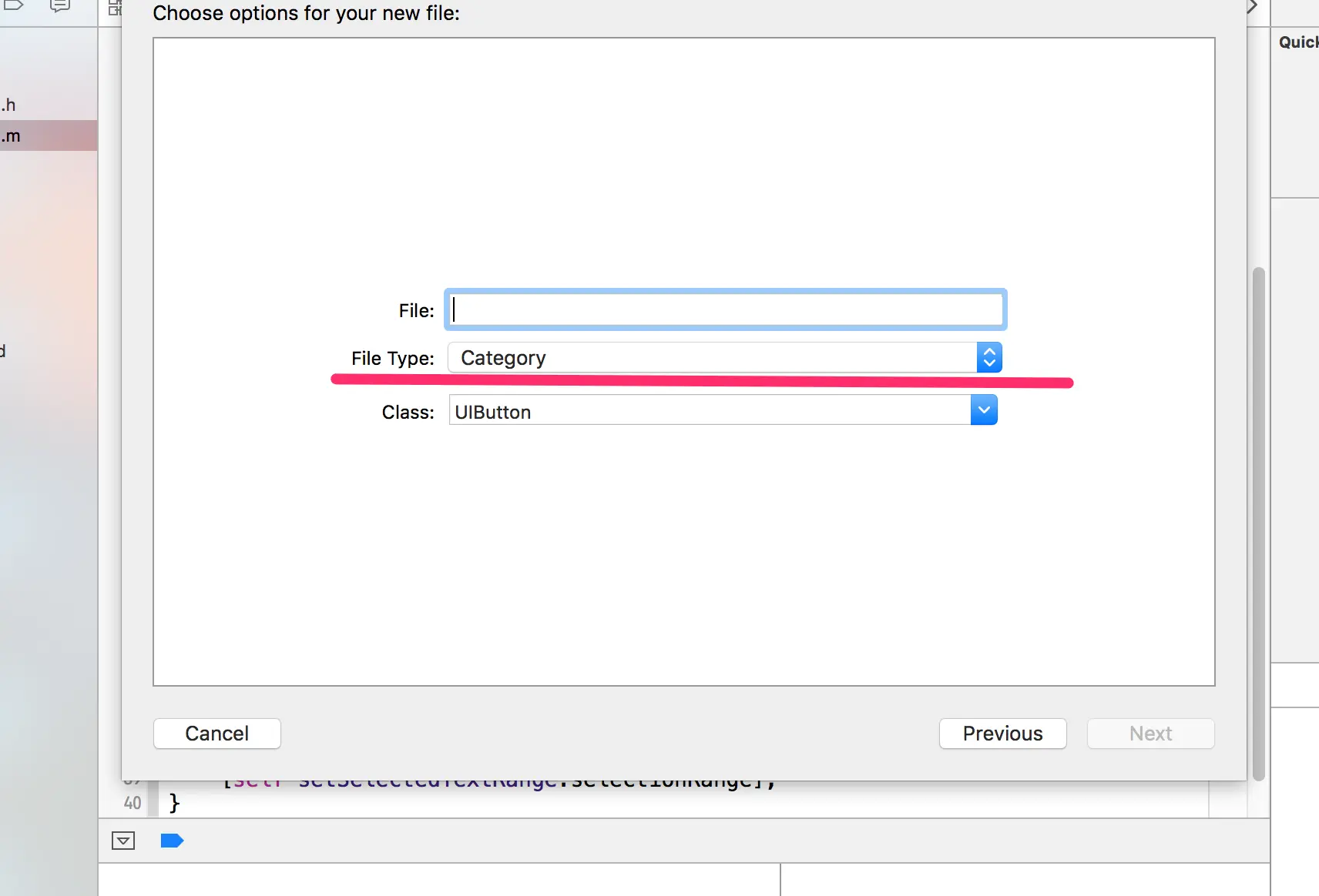 在工程中创建两个Category的分类,一个是UIButton的一个是appdelegate的。在.h文件中按钮的类暴露的方法如图所示。我们在.m中实现它,如下图