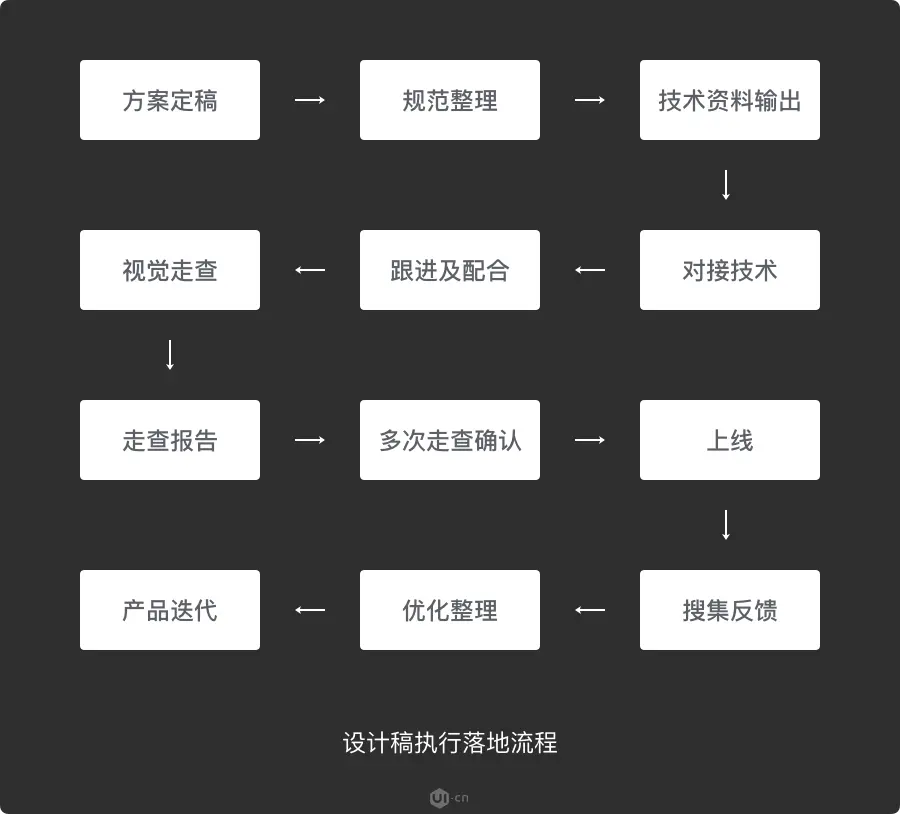 下面给大家展示的是团队里面设计师对接技术的一些流程,设计稿完成只是工作的一部分,最重要的还是技术最终的产出。