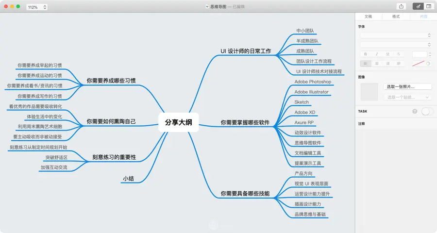 思维导图的软件很多,也有一些在线的工具,比如:Mindnode、MindManager、XMind、Popplet、FreeMind、MindMeister、百度脑图、MindLine 等等,这里就不一一列举了,大家搜索关键词思维导图软件即可发现很多。我个人比较常用的是 Mindnode,大家根据自己的习惯选择即可,最终只要能够达到你想要的结果。