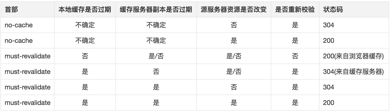 must-revalidate:告诉浏览器、缓存服务器,本地副本过期前,可以使用本地副本;本地副本一旦过期,必须去源服务器进行有效性校验。