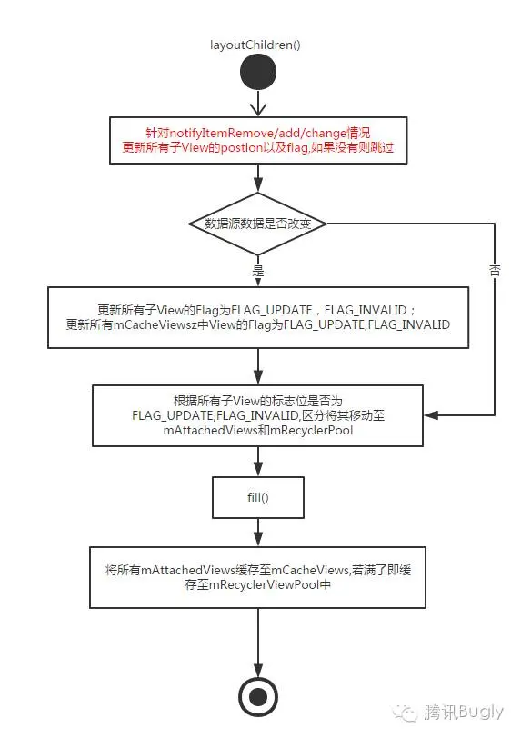 需要指出,ListView和RecyclerView最大的区别在于数据源改变时的缓存的处理逻辑,ListView是"一锅端",将所有的mActiveViews都移入了二级缓存mScrapViews,而RecyclerView则是更加灵活地对每个View修改标志位,区分是否重新bindView。