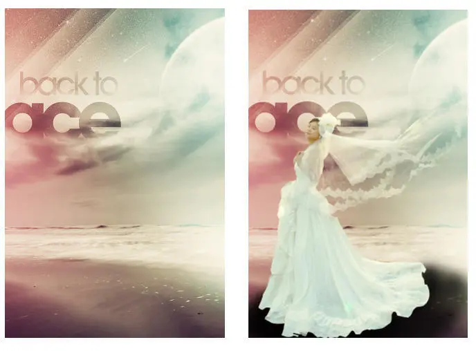 3.导入背景素材,将其放置在最底层,创建一个新的图层,使用黑色柔角画笔在裙子下方涂抹,制作出阴影;