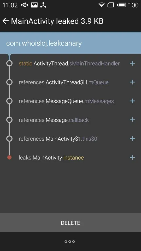 早些年Handler的使用频率还是蛮高的,它是工作线程与UI线程之间通讯的桥梁,只是现在大量开源框架对其进行了封装,我们这里模拟一种常见使用方式来模拟内存泄漏情形。