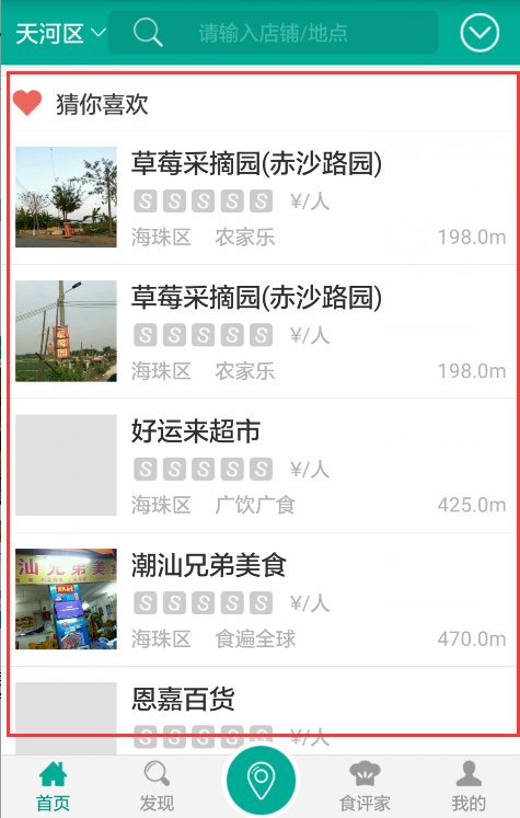 功能体验:【猜你喜欢】这部分位于首页最下方,根据大数据来推荐商户。