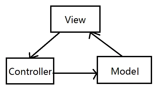 2:再看一遍我们的MVC的结构图,View和Model是互相联系的,存在耦合关系,这就给测试维护带来了难度。当我们想更换项目中的某个零件时,缺发现 太难拆下来!这个零件类的方法散布多处。关于MVC的结构图,忘了在哪听过一句经典的话,写三个字母,M,V,C,随便用线或箭头连字母,最后就是MVC的结构图。