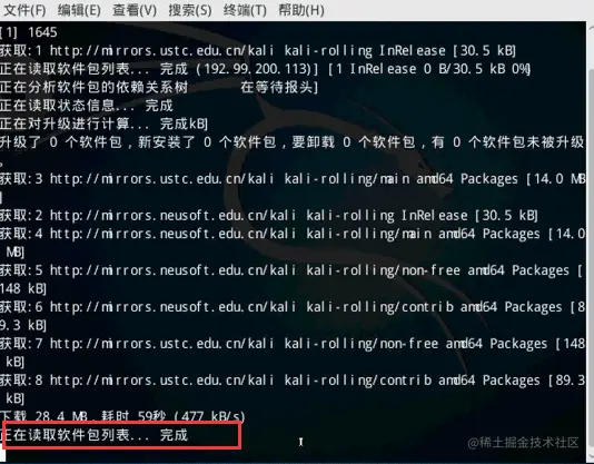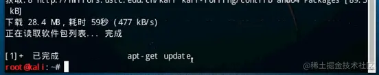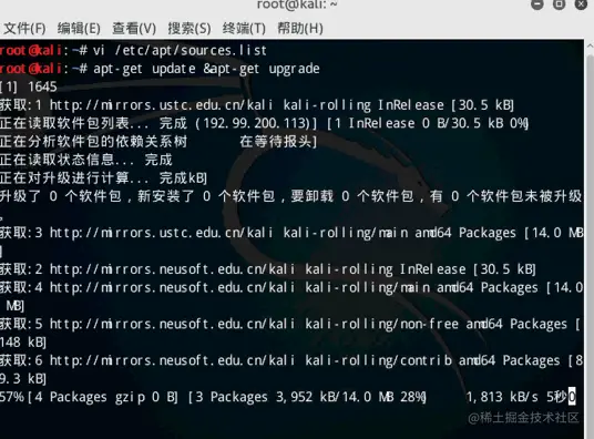 由于网络原因,很可能会更新失败,这个时候通过VPN或者Socks代理进行FQ就很有必要了。如果你觉得在Kali里完成FQ有困难的话,请参考我之前的文章《kali linux 2.0 虚拟机通过宿主机代理实现科学上网-第二弹》,可以保证你能顺利更新。整个更新是一个漫长的过程,要做好充分的心理准备。