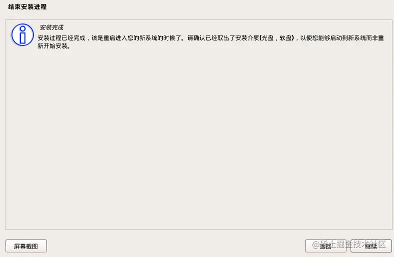 单击“继续”。MBR写完之后,出现安装过程完成的界面。如图37.