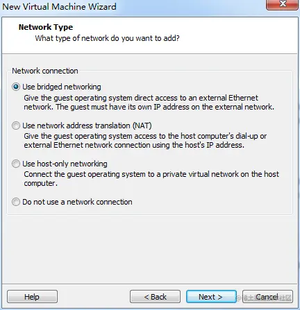 单击“下一步”,配置网络类型。如果你的网络支持DHCP,可以选择桥接方式,否则选择NAT方式。