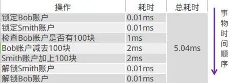 当用户增长到一定程度,Bob和Smith的账户及余额信息已经不在同一台服务器上了,那么上面的流程就变成了这样: