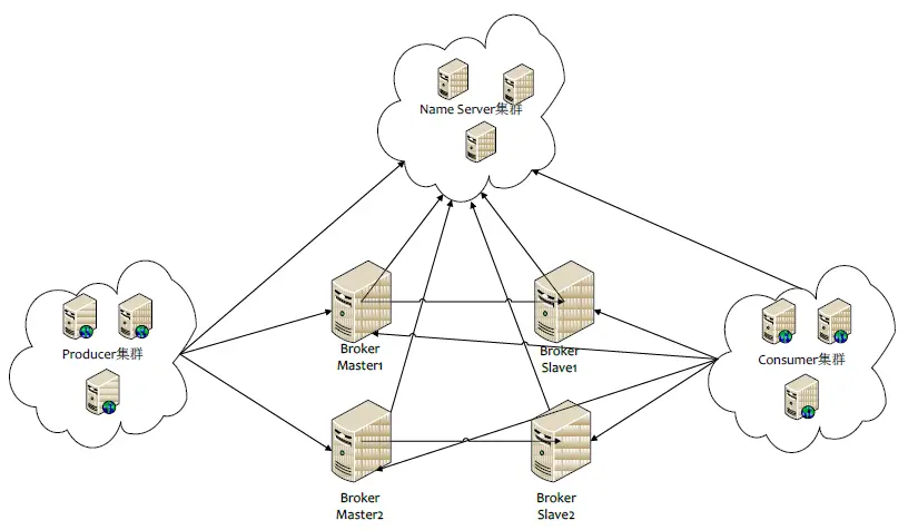 Master与Slave,一个Master可以对应多个Slave,但是一个Slave只能对应一个Master,Master与Slave的对应关系通过指定相同的BrokerName,不同的BrokerId来定义,BrokerId=0表示Master,非0表示Slave。Master也可以部署多个。每个Broker与Name Server集群中的所有节点建立长连接,定时注册Topic信息到所有Name Server。 -