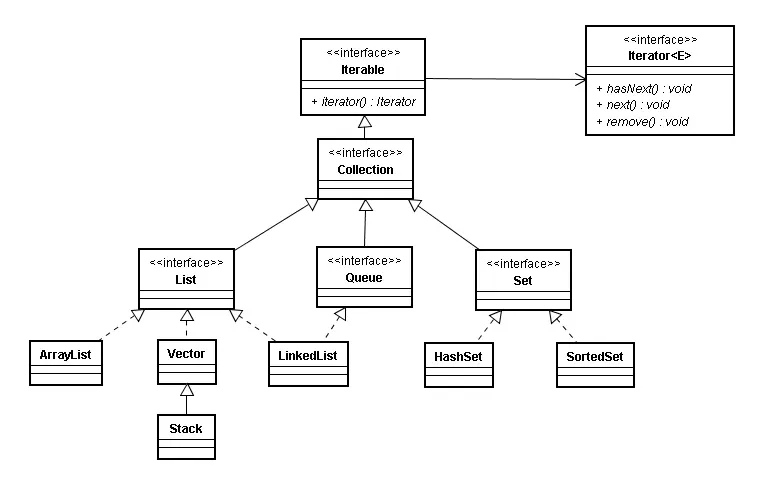 迭代器模式是与集合共生共死的,一般来说,我们只要实现一个集合,就需要同时提供这个集合的迭代器,就像java中的Collection,List、Set、Map等,这些集合都有自己的迭代器。假如我们要实现一个这样的新的容器,当然也需要引入迭代器模式,给我们的容器实现一个迭代器。