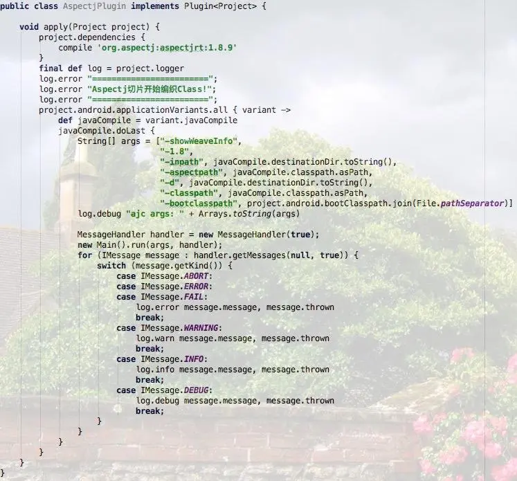 2、自定义一个gradle插件,使用 AspectJ 的编译器(ajc,一个java编译器的扩展), 对所有受 aspect 影响的类进行织入。,在 gradle 的编译 task 中增加额外配置,使之能正确编译运行。