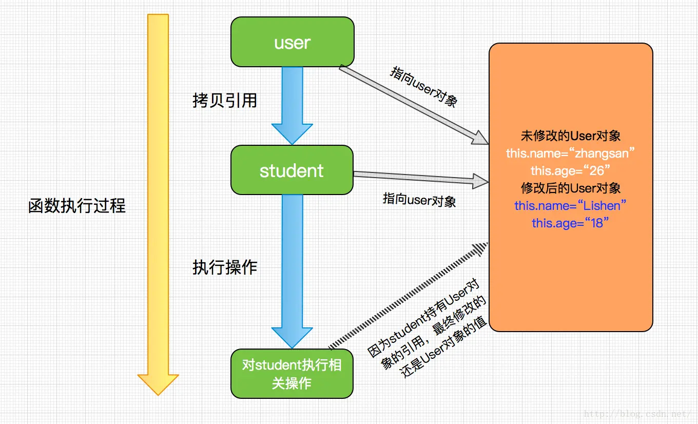 调用前user的值:User [name=zhangsan, age=26] 调用后user的值:User [name=Lishen, age=18] |