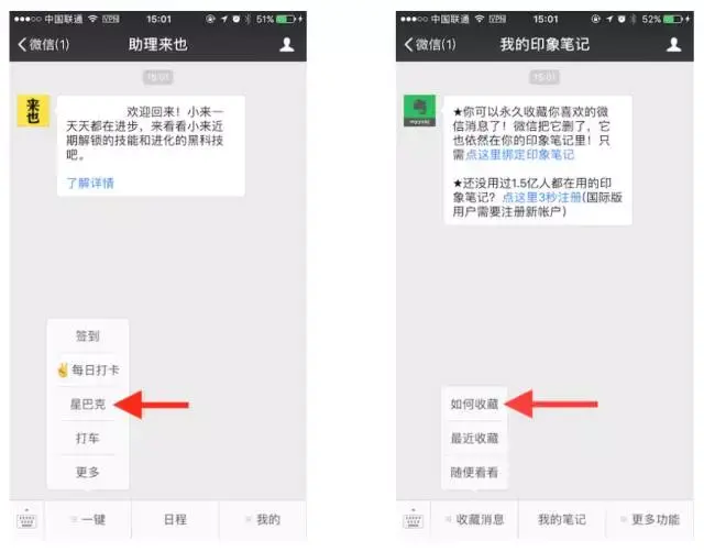 在「助理来也」,你可以订购身边的各种服务,你也可以通过「我的印象笔记」把阅读的公众号文章存到印象笔记(中国版)里: