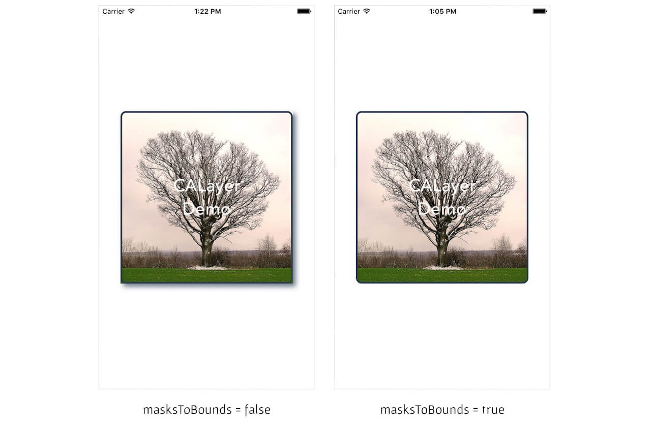 第三行:我们设置 masksToBounds 为 true,以便图层中任何延伸到边界外的子图层都会在边界处被剪裁。如果你不明白这句话的含义,你可以把这个值设置为 false,然后查看效果。