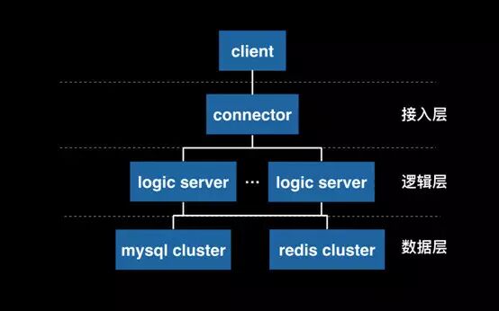 至此,我们就会发现,一个典型的三层结构出现了:接入、逻辑、存储。然而,这种三层结果,并不就能包医百病。例如,当我们需要让用户在线互动(网游就是典型) ,那么分割在不同逻辑服务器上的在线状态数据,是无法知道对方的,这样我们就需要专门做一个类似互动服务器的专门系统,让用户登录的时候,也同时记录一份数据到它那里,表明某个用户登录在某个服务器上,而所有的互动操作,要先经过这个互动服务器,才能正确的把消息转发到目标用户的服务器上。