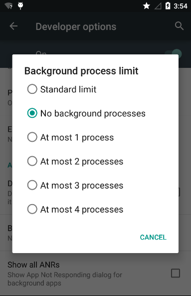 在『开发者选项』中的Background Process Limit中设置为No Background Processes