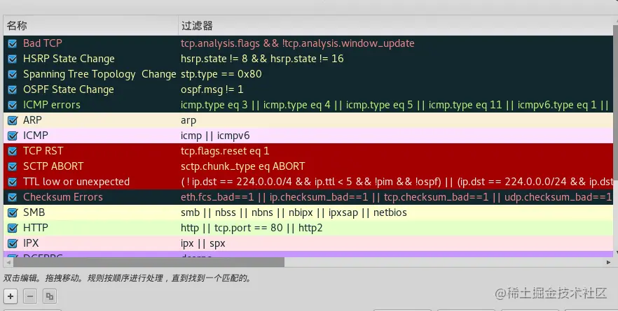 Protocol,协议字段。支持的协议可以从图14的编辑器中看到,从OSI 7层模型的2到7层都支持。 -