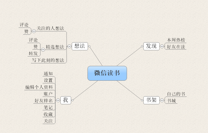 确定好产品需求后,就要确定各个需求之间的组织结构。微信读书的组织结构如下图所示: