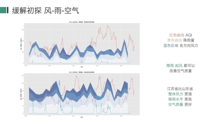 我主要做了以下几个方面的统计、分析和可视化:空气质量、水质、污染、风、雨。可视化的工作包括使用python和R绘制静态可视化图片,以及使用D3进行交互可视化。