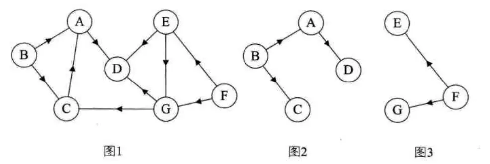 一个有向图的生成森林由若干棵有向树组成,含有图中全部顶点,但只有足以构成若干棵不相交的有向树的弧。