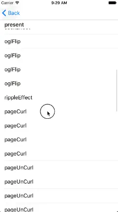 iOS自身其实有许多不错的转场动画,在这个转场动画集里也进行了封装,使用方法跟自定义转场动画一样。